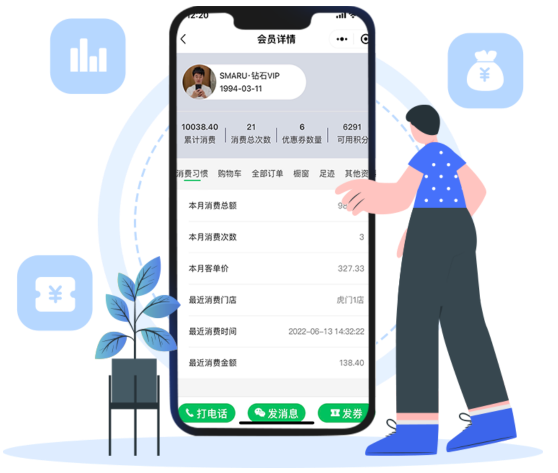 導購可以根據會員的瀏覽信息動態,及時發起...