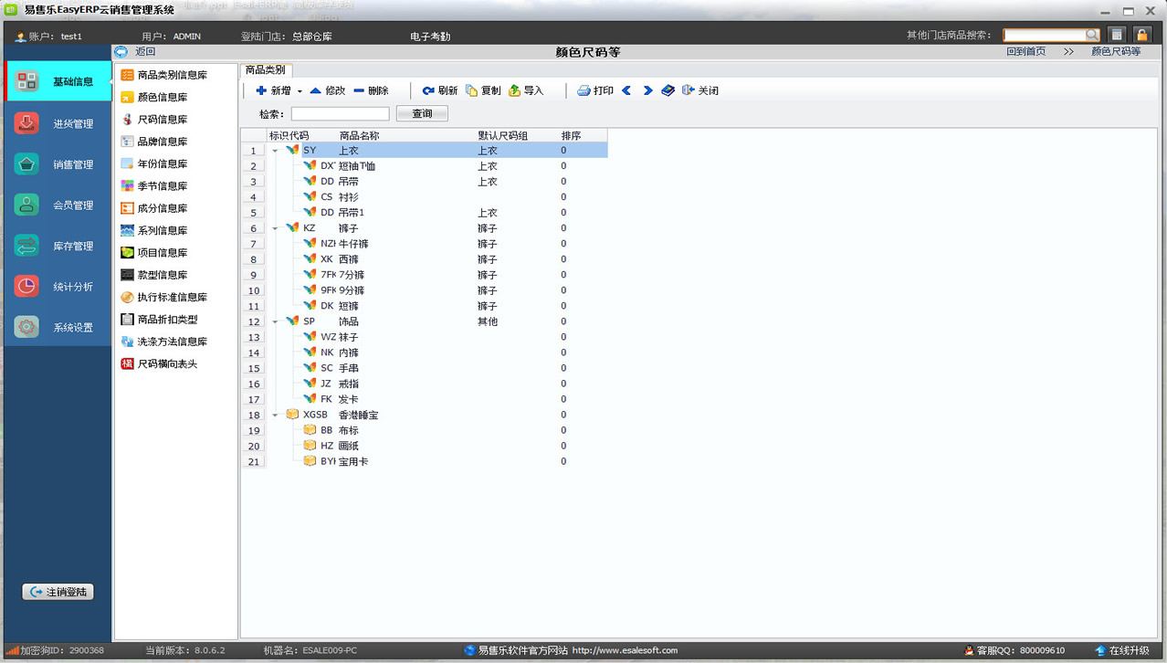 可以管理商品的款號、顏色、尺碼、品牌、類別、季節、折扣、波段、執行標準、洗滌方法、成份、系列、安全級別等商品信息。