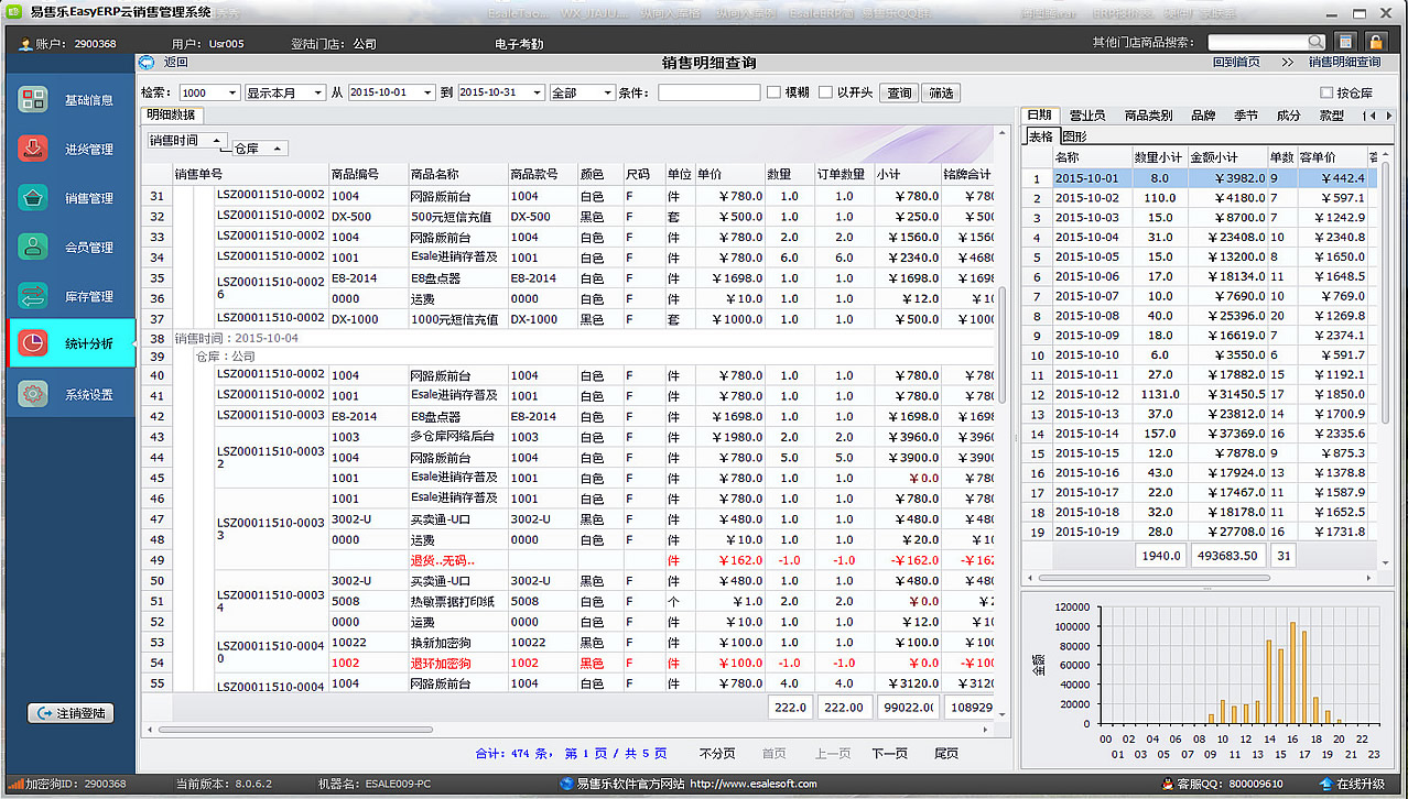 采用尺碼縱向或橫向多種統計模式的結構按不同的規則和時間段進行銷售統計報表并支持導出打印,方便快鍵的統計出自己想要的報表。