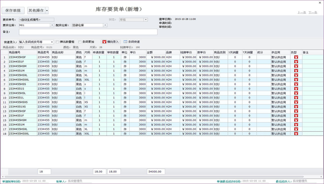 要貨管理方便店面和總部之間的溝通,由店面制作庫存要貨單,總部進行審核處理。方便后續的商品采購和商品調撥管理。